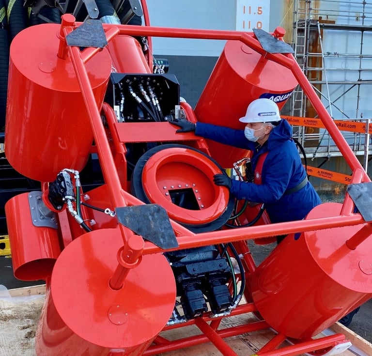 GS Oceanguard's Aqua-Weir skimmers are designed for high-efficiency oil recovery, using the weir overflow principle to remove oil from the water’s surface. Built with marine-grade aluminum and lightweight construction, they ensure durability and ease of deployment in various spill environments.